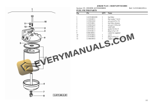 Hurlimann JOKER 75.4 E (H10S714WT1E10001) Tractor Parts Catalog PDF