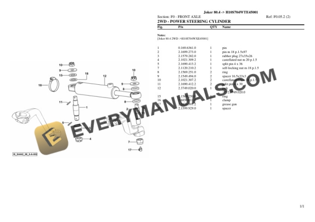 Hurlimann Joker 80.4 (H10S704WTE45001) Tractor Parts Catalog PDF