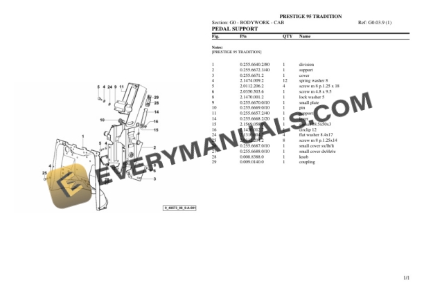 Hurlimann PRESTIGE 95 TRADITION Tractor Parts Catalog PDF