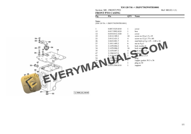 Hurlimann XM 120 T4i (ZKDY7502W0TH10001) Tractor Parts Catalog PDF