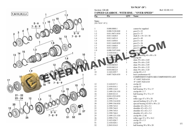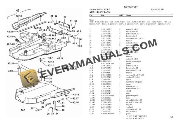 Hurlimann XS-70 (24”-28”) Tractor Parts Catalog PDF