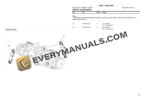 Hurlimann XS80 (5001 15001) Tractor Parts Catalog PDF