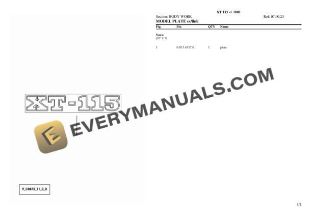 Hurlimann XT 115 (5001) Tractor Parts Catalog PDF