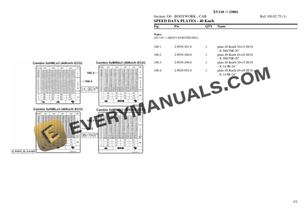 Hurlimann XV110 (15001) Tractor Parts Catalog PDF