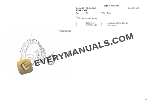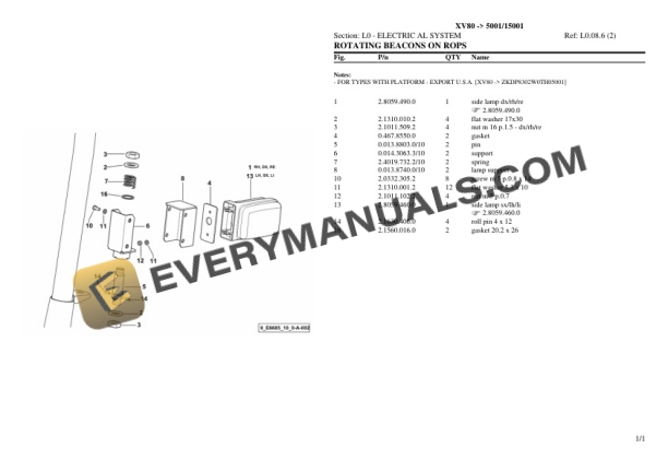Hurlimann XV80 (5001 15001) Tractor Parts Catalog PDF