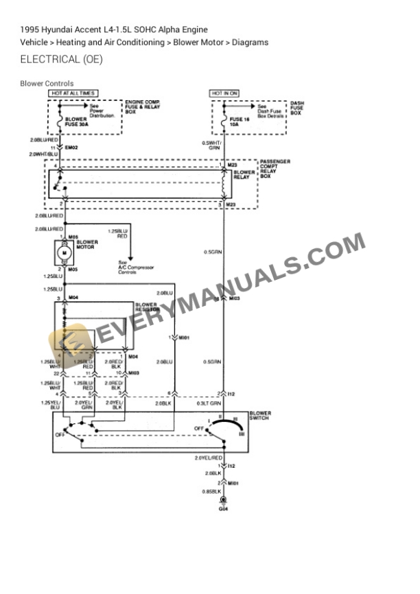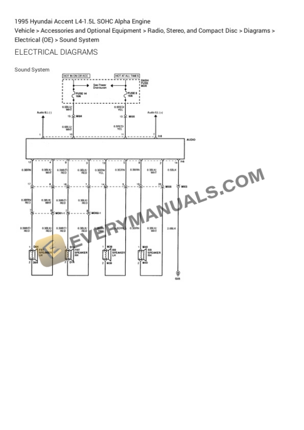 Hyundai Accent 1995 Electrical Diagrams L4-1.5L SOHC Alpha Engine