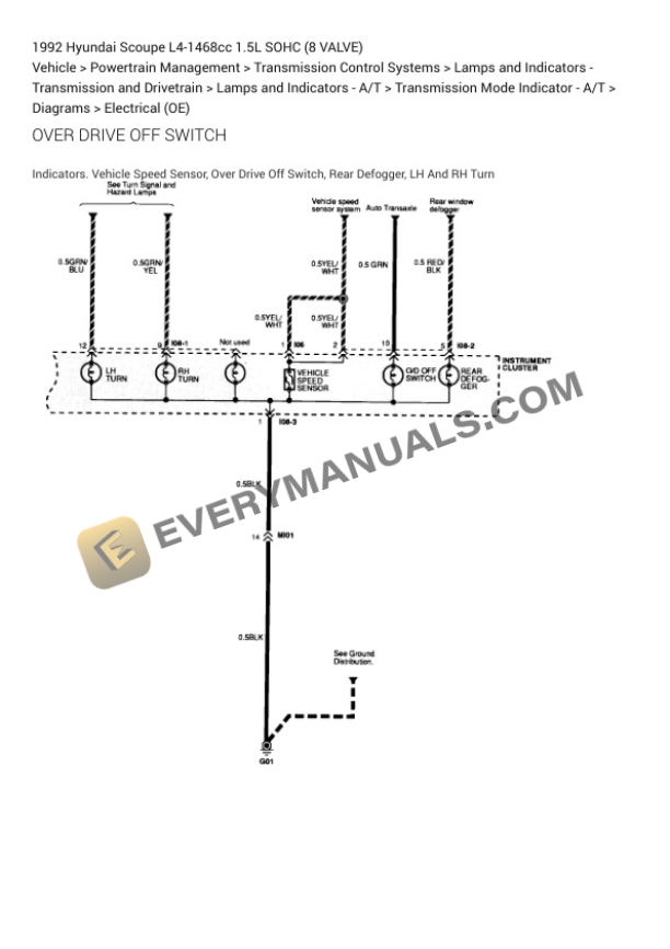 Hyundai Scoupe 1992 Electrical Diagrams L4-1468cc 1.5L SOHC (8 VALVE)