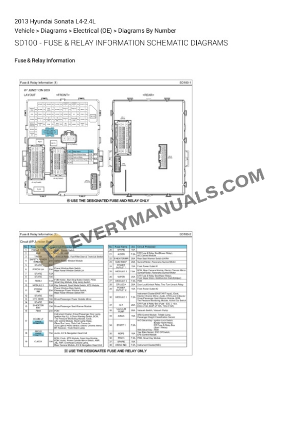 - 197. SD100 – Fuse amp Relay Information Schematic Diagrams