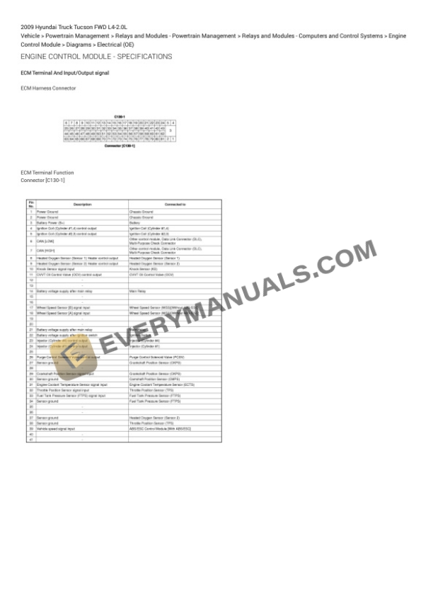Hyundai Truck Tucson FWD 2009 Electrical Diagrams L4-2.0L