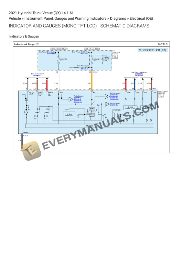 - 70. Indicator and Gauges (Mono TFT LCD) – Schematic Diagrams