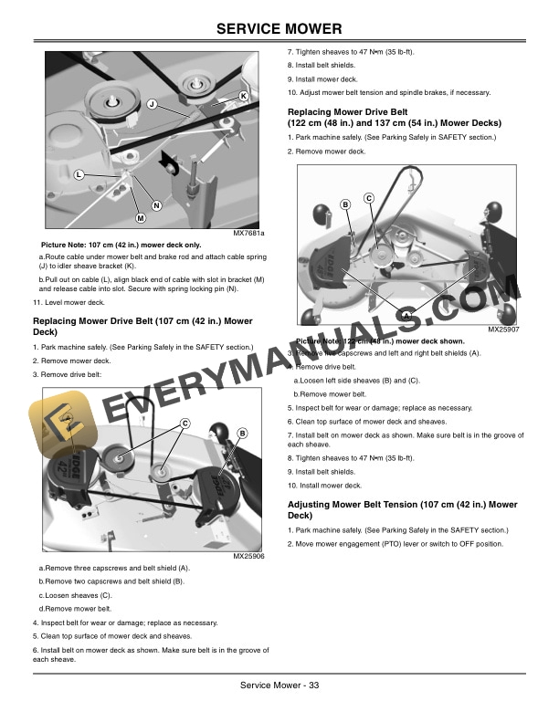 - 11.1. Removing or Installing Mower Drive Belt at Engine Drive Sheave (122 cm (48 in.) and 137 cm (54 in…