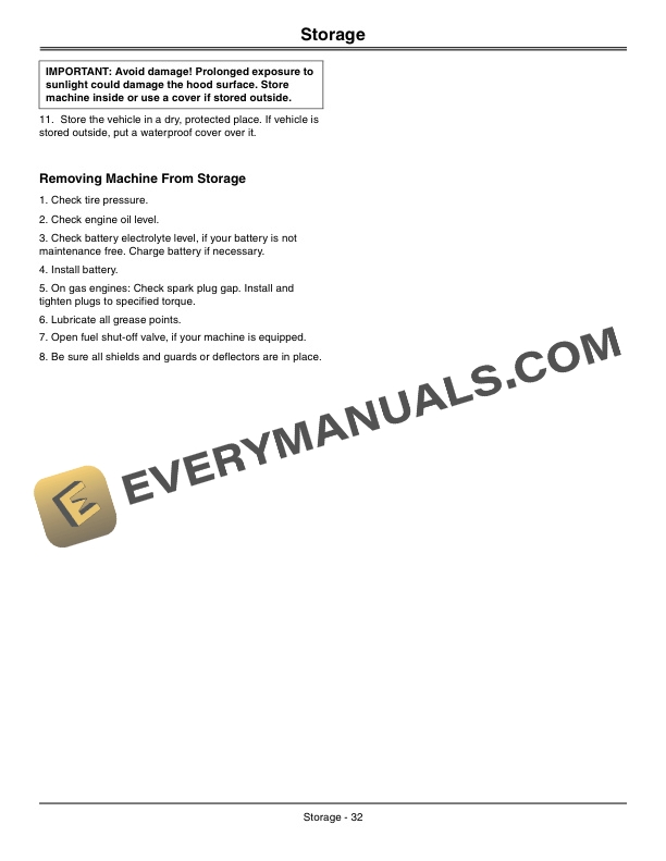 - 9.3.2. Other oils may be used if above John Deere oils are not available, provided they meet the followi…