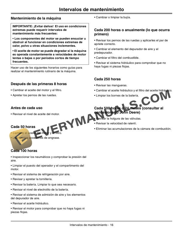 - 7.8. Every 500 Hours or 24 Months (See your John Deere dealer)