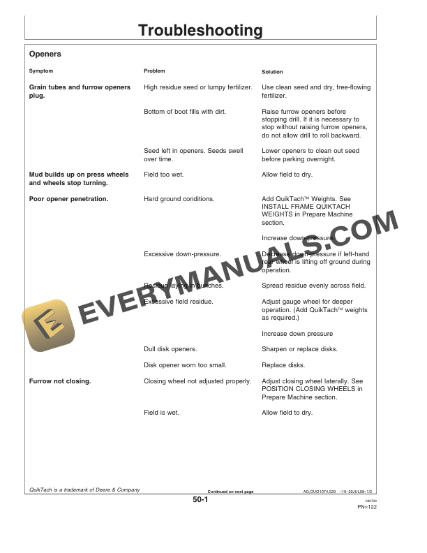 John Deere 1590 Grain Drill Operator Manual OMN300820