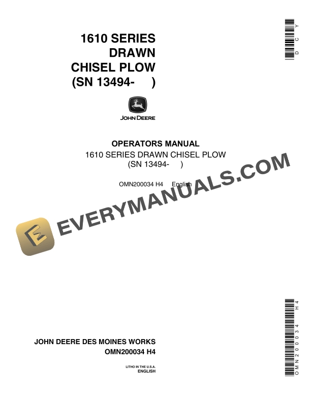 John Deere 1610 Series Drawn Chisel Plow Operator Manual OMN200034