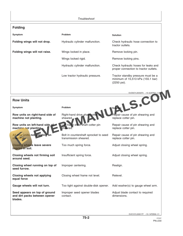 John Deere 1700, 1710, 1720, 1730 Integral Planter Operator Manual OMA85375