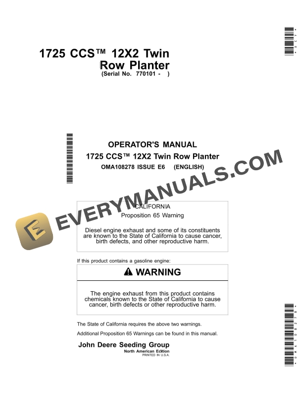 John Deere 1725 CCS 12×2 Twin Row Planter Operator Manual OMA108278