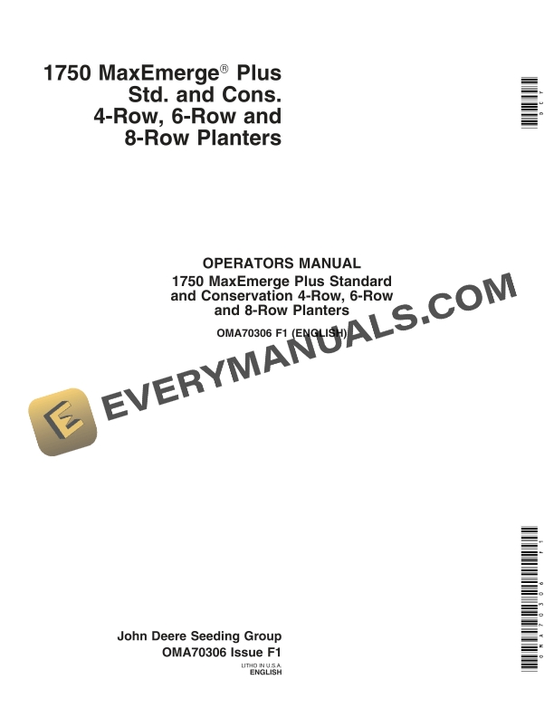 John Deere 1750 MaxEmerge Plus Standard and Conservation Operator Manual OMA70306
