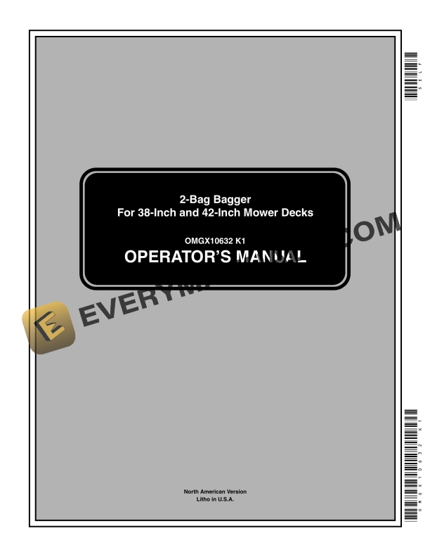 John Deere Saber 2-Bag Bagger For 38-Inch, 42-Inch Mower Decks Operator Manual OMGX10632