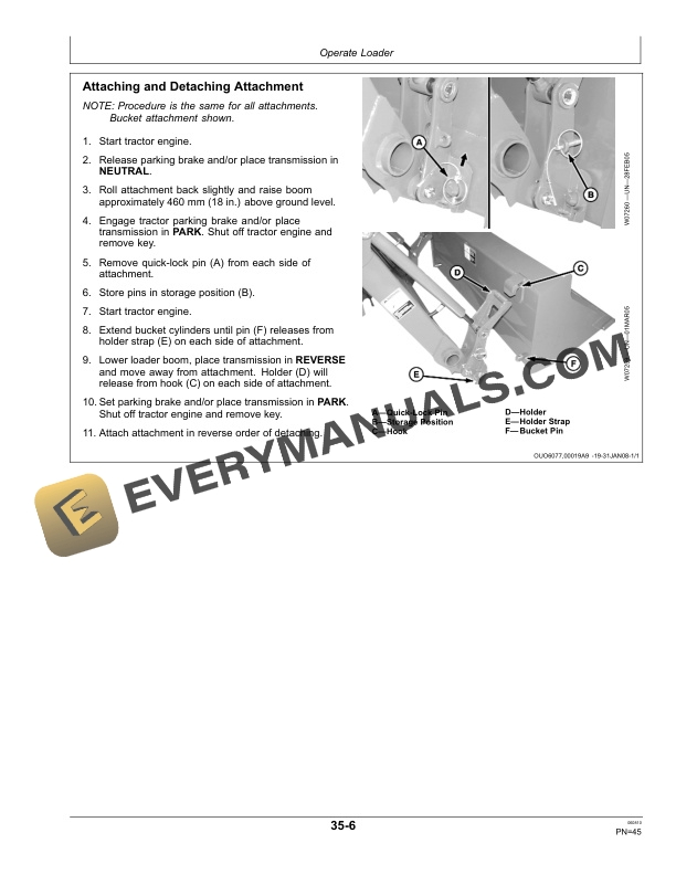 - 1.9.7. Install Optional Pin On Bucket