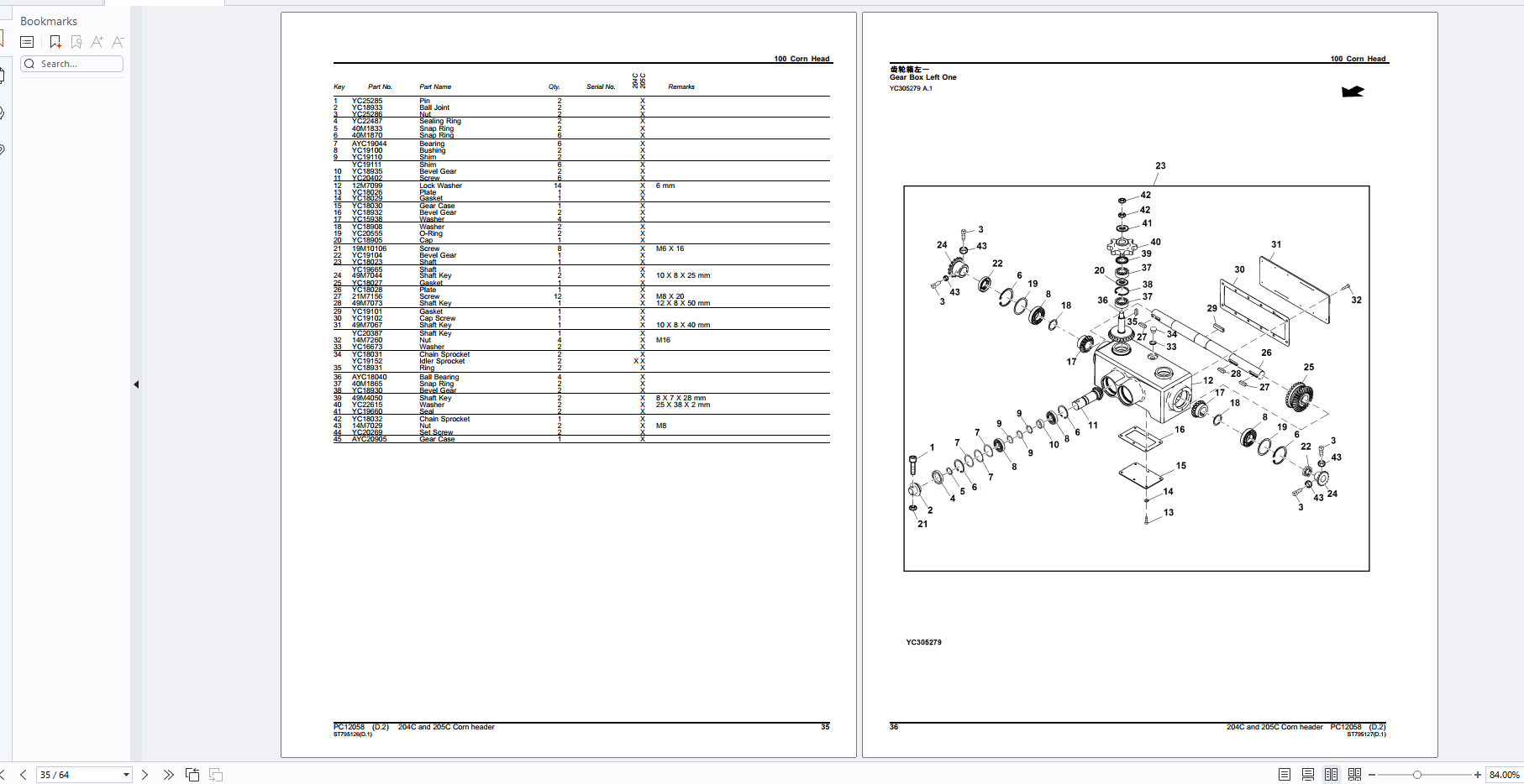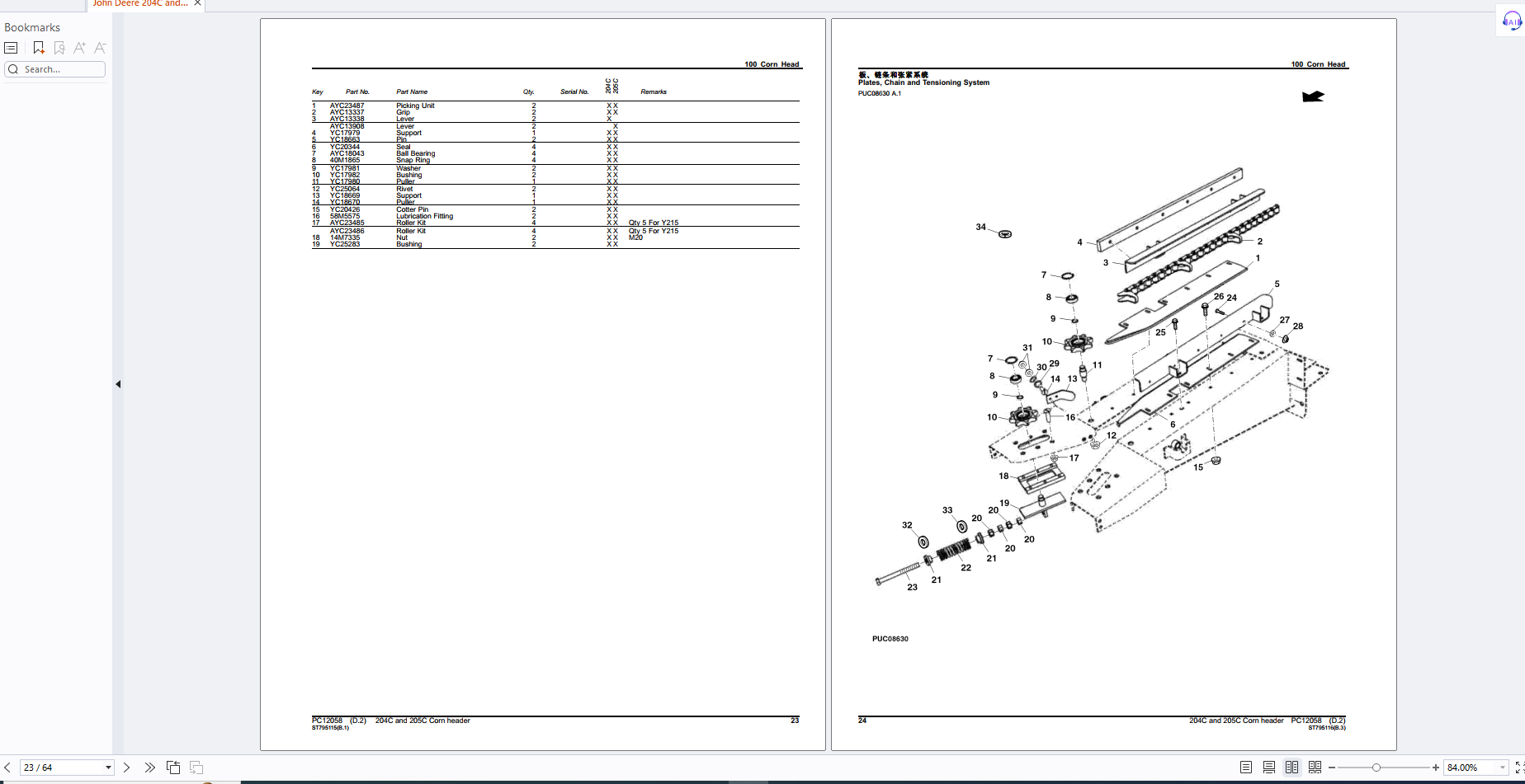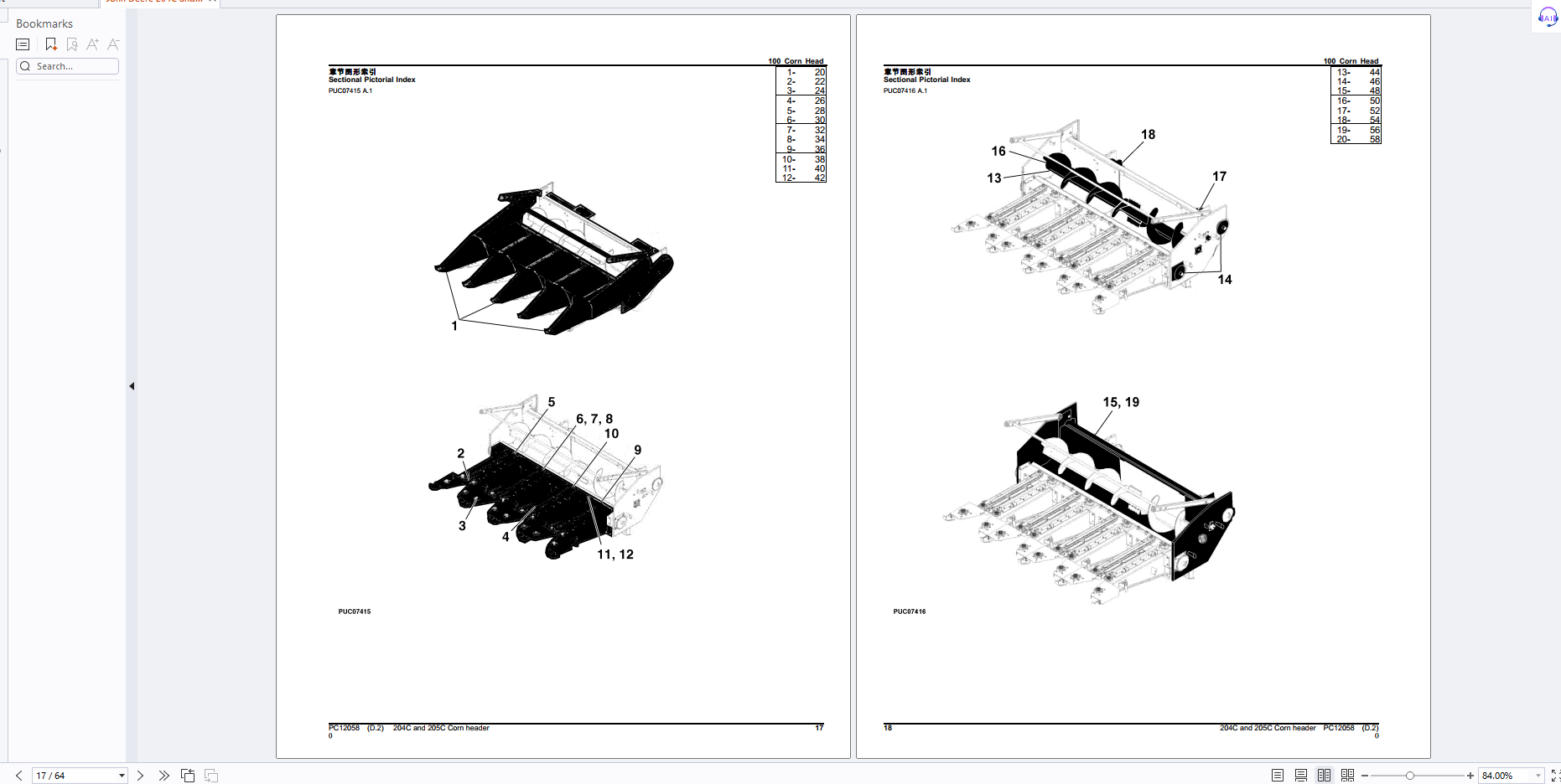John Deere 204C and 205C Corn header Parts Catalog PC12058 PDF