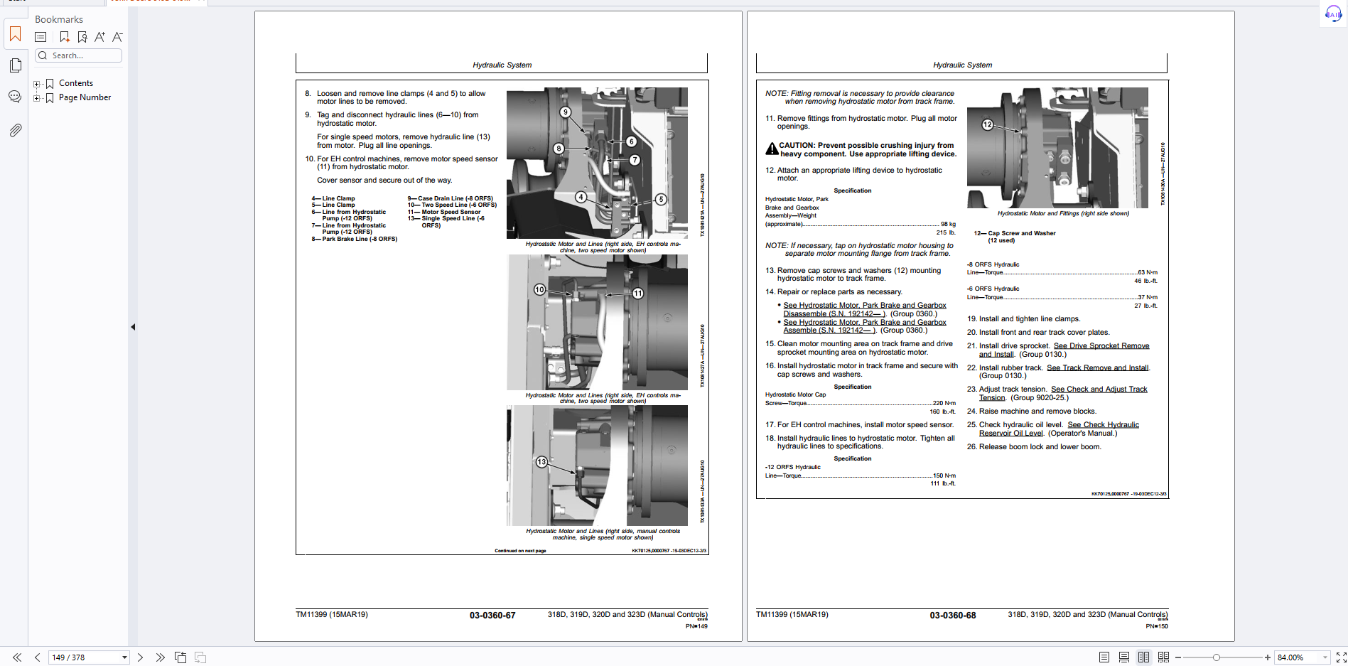 John Deere 318D 319D 320D and 323D Skid Steer Loader (Manual Controls) Repair Technical Manual TM11399 PDF