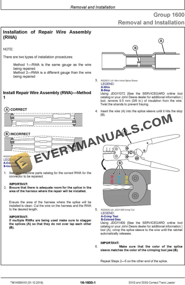 John Deere 331G 333G Compact Track Loader Repair Manual TM14068X19