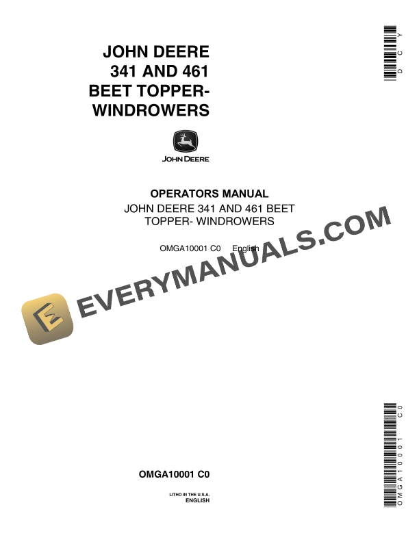 John Deere 341 and 461 Beet Topper- Windrower Operator Manual OMGA10001