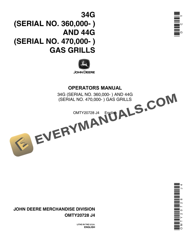 John Deere 34G and 44G Gas Grill Operator Manual OMTY20728
