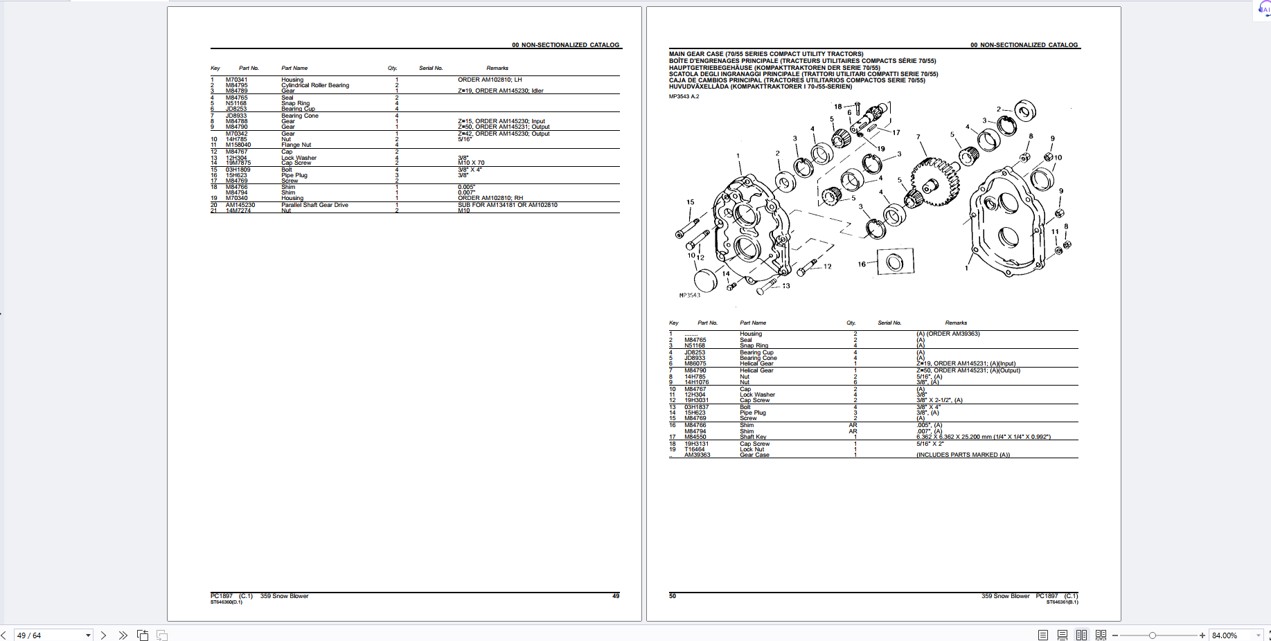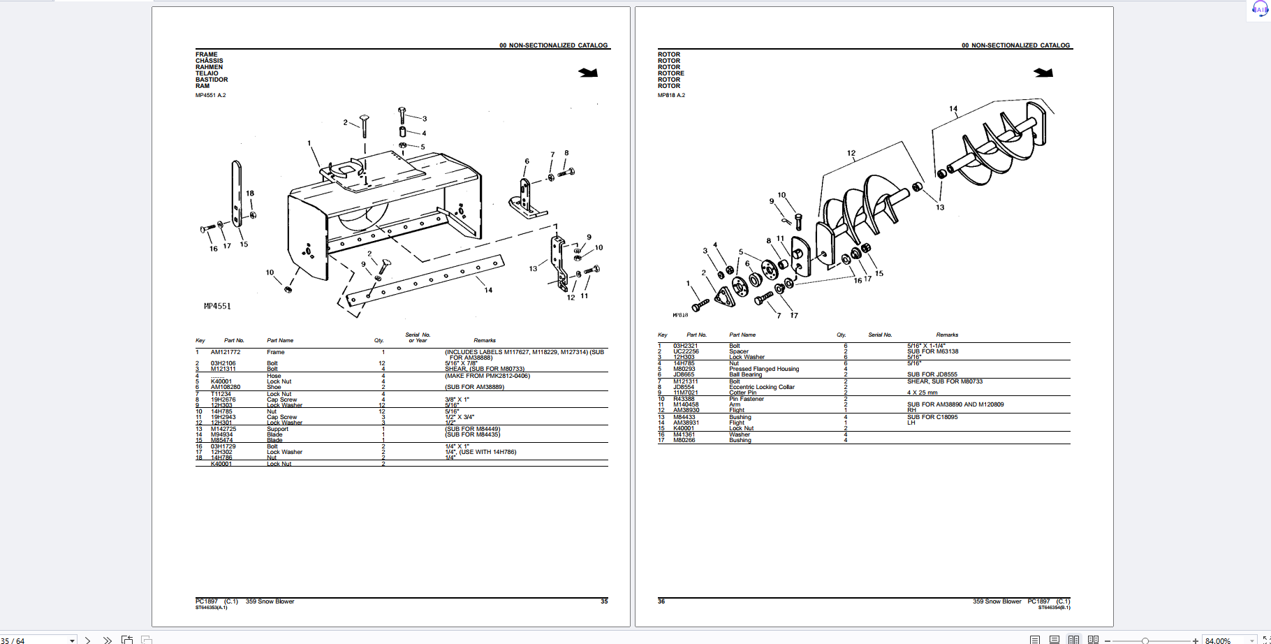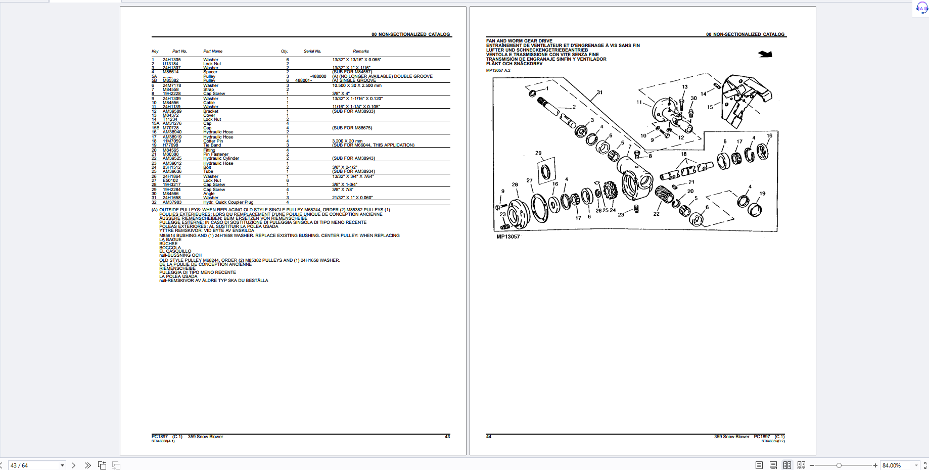 John Deere 359 SNOW BLOWER Parts Catalog PC1897 PDF