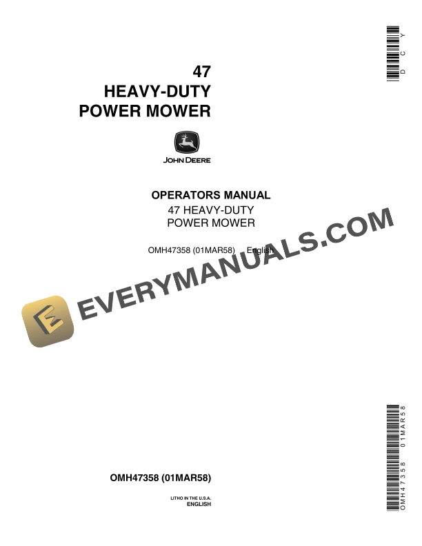 John Deere 47 Heavy-Duty Power Mower Operator Manual OMH47358