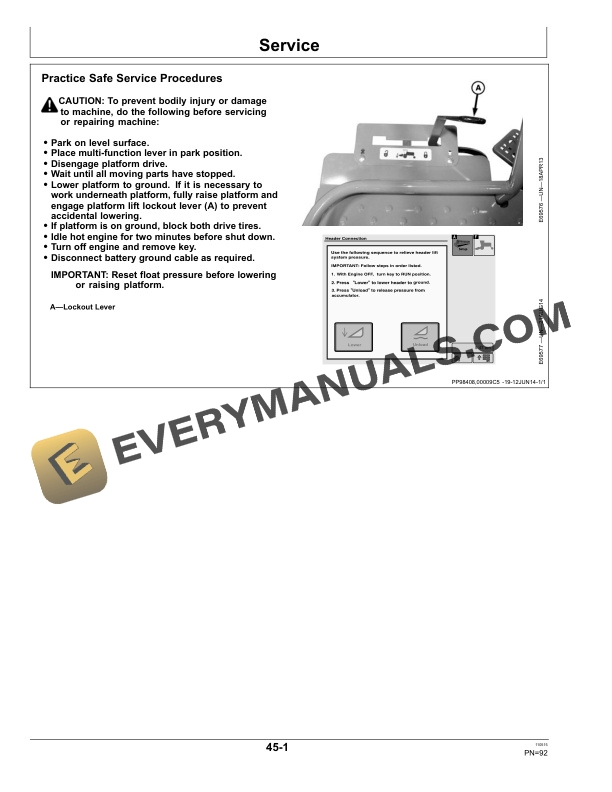 - 1.3.6. Adjust Platform Cutterbar Angle