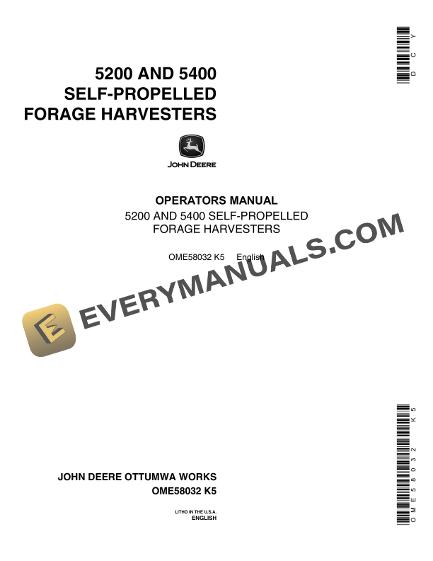John Deere 5200 and 5400 Self-Propelled Forage Harvesters Operator Manual OME58032