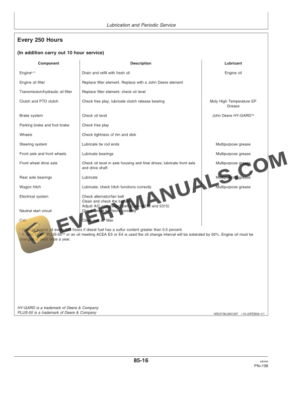 - 1.17. Service Every 250 Hours