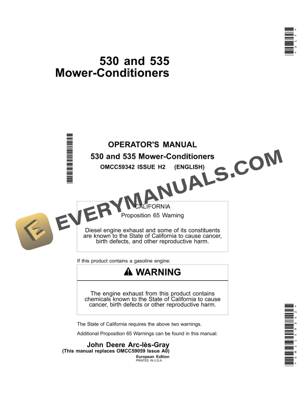 John Deere 530 and 535 Mower-Conditioner Operator Manual OMCC59342