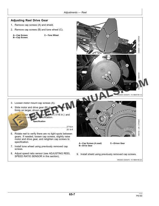 - 1.12.10. Adjusting Reel Drive Gear