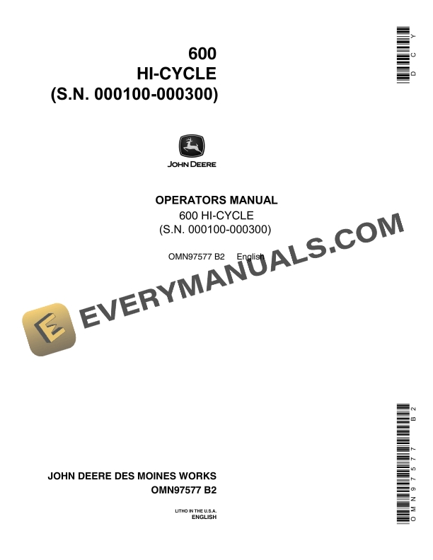 John Deere 600 Hi-Cycle Operator Manual OMN97577
