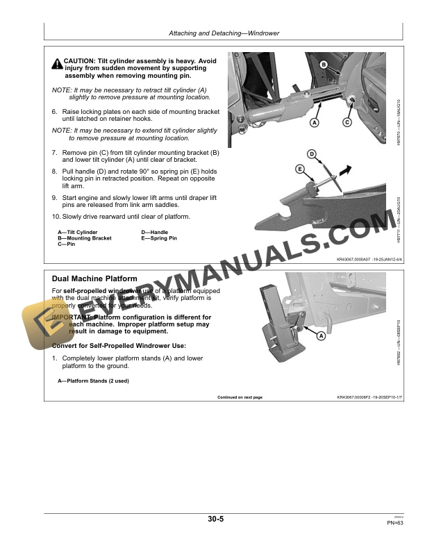 - 1.5.1. Attaching Platform to Windrower