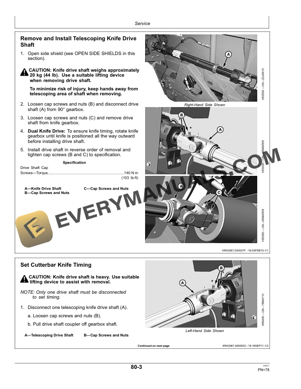 - 1.15.5. Remove and Install Telescoping Knife Drive Shaft