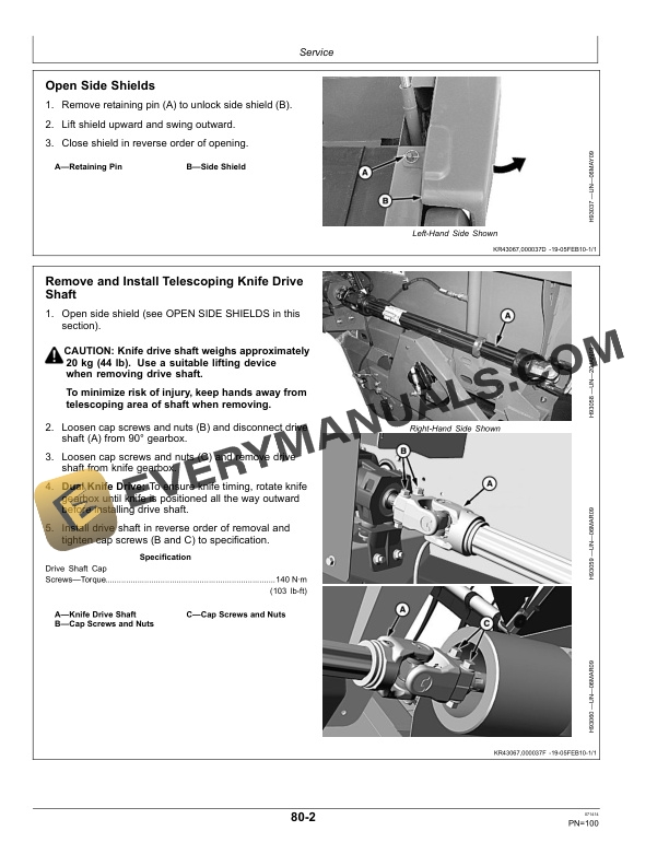 - 1.15.4. Remove and Install Telescoping Knife Drive Shaft
