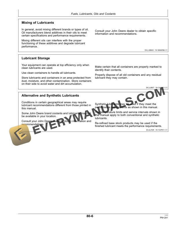 - 1.18. Fuels, Lubricants, Oils and Coolants