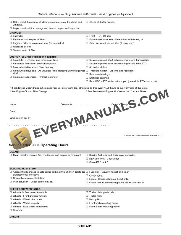 - 59. Service Intervals Only Tractors with Final Tier 4 Engines (6 Cylinder)