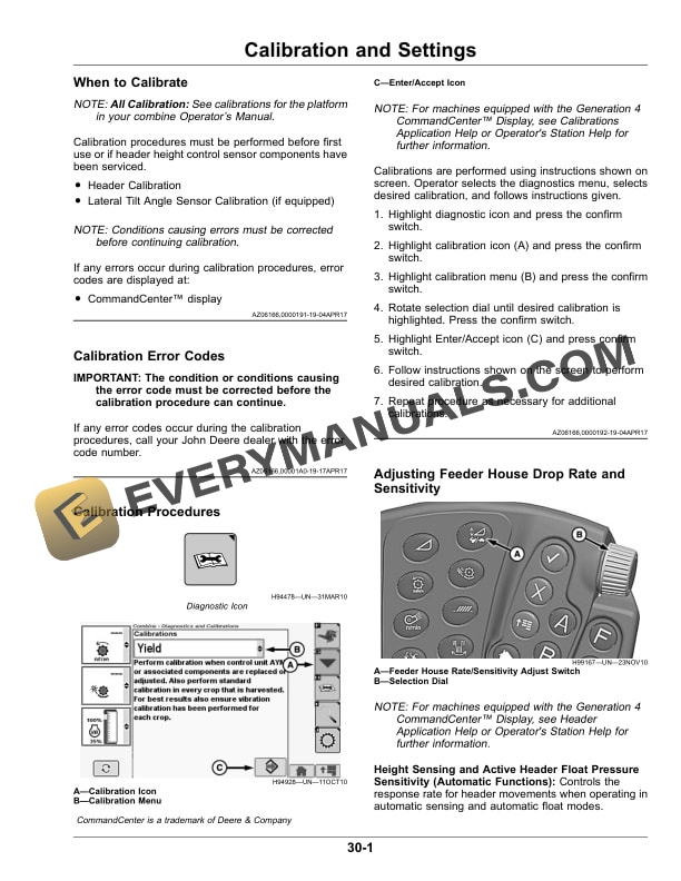 7.4 Adjusting Feeder House Drop Rate and Sensitivity