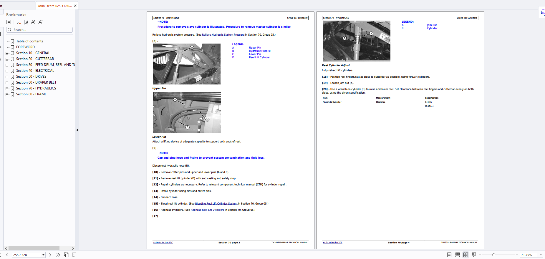John Deere 625D 630D 635D and 640D Draper Platform Repair Technical Manual TM103919 PDF