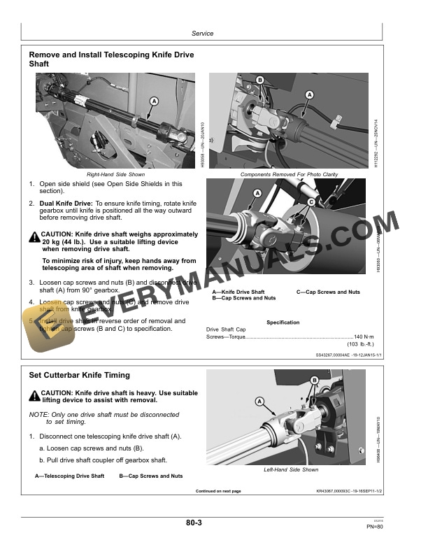 - 1.15.4. Remove and Install Telescoping Knife Drive Shaft