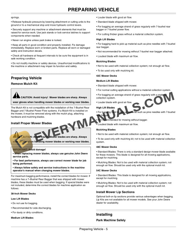 John Deere 7-Bushel Rear Bagger Operator Manual OMM154285