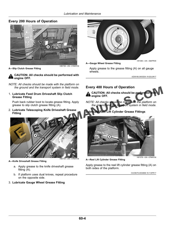- 13.1.1. Manual Feeder House Fore/Aft Tilt