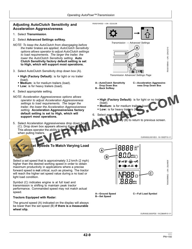 - 1.9. Operating AutoPowrAutoPowr is a trademark of Deere CompanyTra