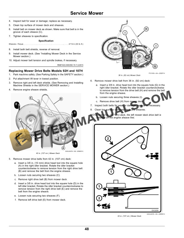 14.8 Replacing Mower Drive Belts Models 92H and 107H