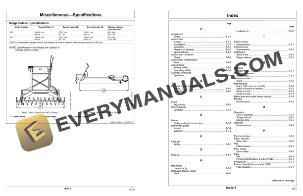 John Deere AD7, AD11 Silage Defacer Operator Manual OMT396232X19